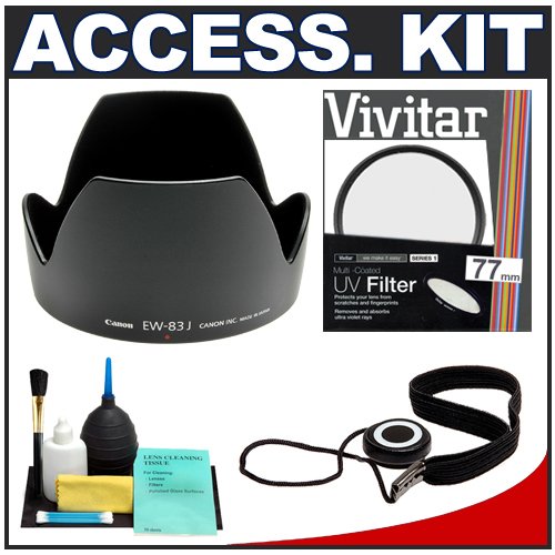 Buy Canon EW-83J Lens Hood + 77mm UV Haze Glass Filter + CapKeeper 2 Lens Cap Strap + Deluxe 6-Piece Lens Cleaning Kit for Canon EF-S 17-55mm f/2.8 IS USM Lens Now