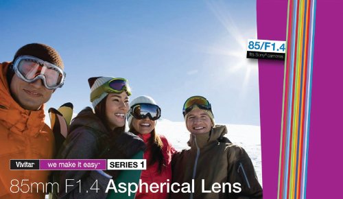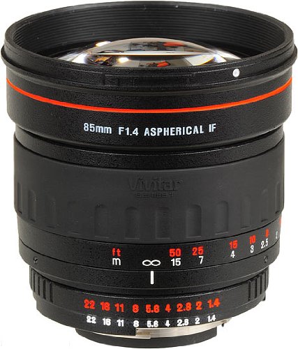 * 1) Vivitar 85mm f/1.4 Series 1 Aspherical (Portrait) Lens - Hood Included -The Vivitar 85mm F 1.4 Aspherical Lens is compact and lightweight. It produces in and out of focus background and also creates a stunning visual effect. This lens is commonly used for portrait's.