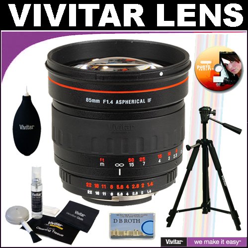 Buy Vivitar 85mm f/1.4 Series 1 Aspherical (Portrait) Lens + Vivitar Tripod + Vivitar Cleaning Kit For The Canon Digital EOS Rebel T1i, XSI, XS, XTI, XT, 50D, 40D, 30D, 20D, 10D, 5D, 1D, 5D Mark 2, 7D Digital SLR Cameras Now
