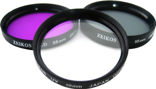 Buy Zeikos 3 Piece 58MM Filter Kit for Canon EOS Digitial Rebel Series and any Digital Camera with 58mm Lens with Exclusive FREE Complimentary Super Deal Micro Fiber Lens Cleaning Cloth Now