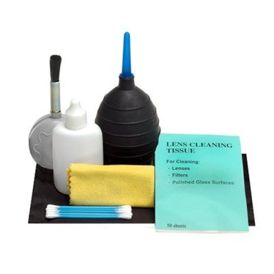 * 3) Deluxe 6 Piece Cleaning Kit - This 6-piece cleaning kit contains a hurricane air blower, lens cleaning tissues, lens cloth, lens cleaning liquid, blower brush and cotton swabs.