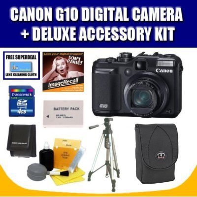 Buy Canon Powershot G10 14.7MP Digital Camera + Deluxe Accessory Kit and Complimentary FREE Exclusive Super Deal Micro Fiber Lens Cleaning Cloth Now
