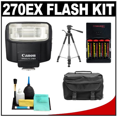 Buy Canon Speedlite 270EX Flash + Tripod + (4) AA Batteries & Charger + Cleaning Kit for Canon Rebel XT, XTi, XS, XSi, T1i, EOS 30D, 40D, 50D, 5D MARK II Digital SLR Cameras Now