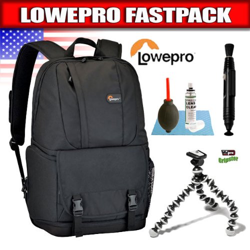 Buy Lowepro Fastpack 200 (Black) Camera Bag + Vidpro Gripster GP-20 Tripod + Lens Pen Tool and a 3 in 1 Cleaning Kit for Canon Rebel XTi, XS, XSi, T1i, Nikon D40, D60, D3000, D5000, Olumpus E420, E450, E520,E620, E30, Sony Alpha 200, 230, 300, 330, 350, and 380 Now