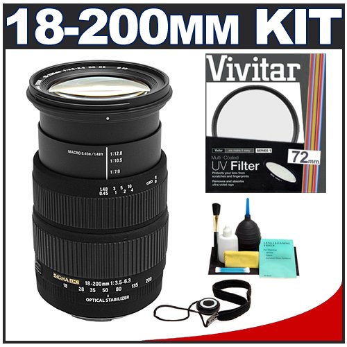 Buy Sigma 18-200mm f/3.5-6.3 DC OS Lens Kit with Hoya Filter + Cap Keeper 2 + 6 Piece Cleaning Kit for Canon EOS 1D Mark III, 40D, 30D, 20D, 5D, Rebel XT, Rebel XTi Digital SLR Cameras Now