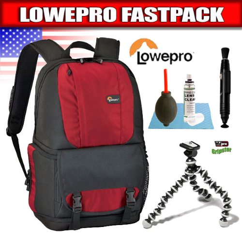 Buy Lowepro Fastpack 200 (Red) Camera Bag + Vidpro Gripster GP-20 Tripod + Lens Pen Tool and a 3 in 1 Cleaning Kit for Canon Rebel XTi, XS, XSi, T1i, Nikon D40, D60, D3000, D5000, Olumpus E420, E450, E520,E620, E30, Sony Alpha 200, 230, 300, 330, 350, and 380 Now