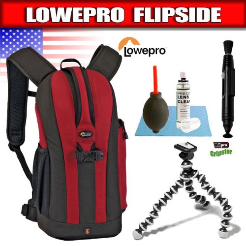 Buy Lowepro Flipside 200 (Red) Camera Bag + Vidpro Gripster GP-20 Tripod + Lens Pen Tool and a 3 in 1 Cleaning Kit for Canon Rebel XTi, XS, XSi, T1i, Nikon D40, D60, D3000, D5000, Olumpus E420, E450, E520,E620, E30, Sony Alpha 200, 230, 300, 330, 350, and 380 Now