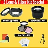 * EVERYTHING IN THIS KIT IS BRAND NEW ITEMS WITH ALL MANUFACTURER SUPPLIED ACCESSORIES + FULL USA WARRANTIES * 2x Telephoto Zoom Lens w/Pouch and Caps * Wide Angle Macro Lens w/Pouch and Caps * 3 Piece Filter Kit Includes: UV, Circular Polarizer and Flourescent Filter * LCD Screen Protectors, Lens/LCD Cleaning Kit, Mini Table Top Tripod